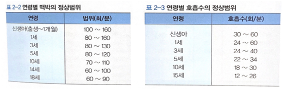 아동의 연령별 체온 정상범위는 다음과 같다.